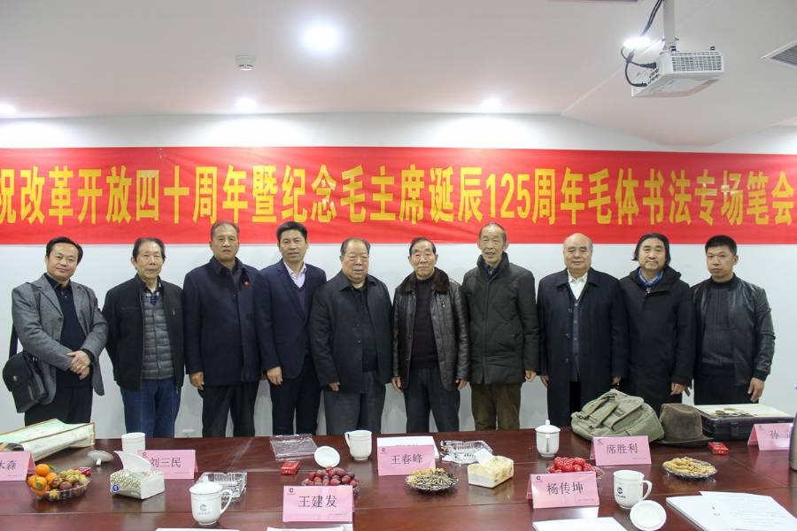 11月21日,慶祝改革開放四十周年暨紀念毛主席誕辰125周年毛體書法專場筆會在鄭州舉辦,王春峰、劉三民、孫立、李木森等來自河南省毛體書法研究會的數十位書法家和毛體書法愛好者匯聚一堂,揮毫潑墨,用一幅幅書法作品,共同謳歌改革開放40周年的豐功偉績,追憶開國領袖毛主席的偉人氣魄。