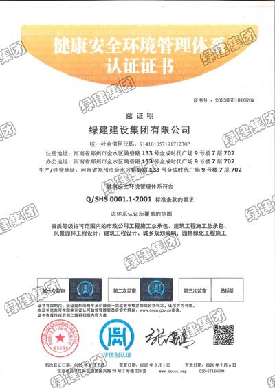 HSE健康安全環(huán)境管理體系證書(0001.1-2001)