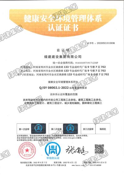 HSE健康安全環(huán)境管理體系認證證書(08002.1-2022)
