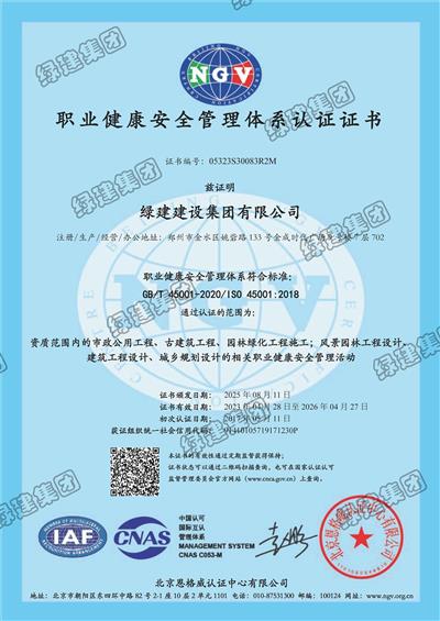 職業(yè)健康安全管理體系認證證書
